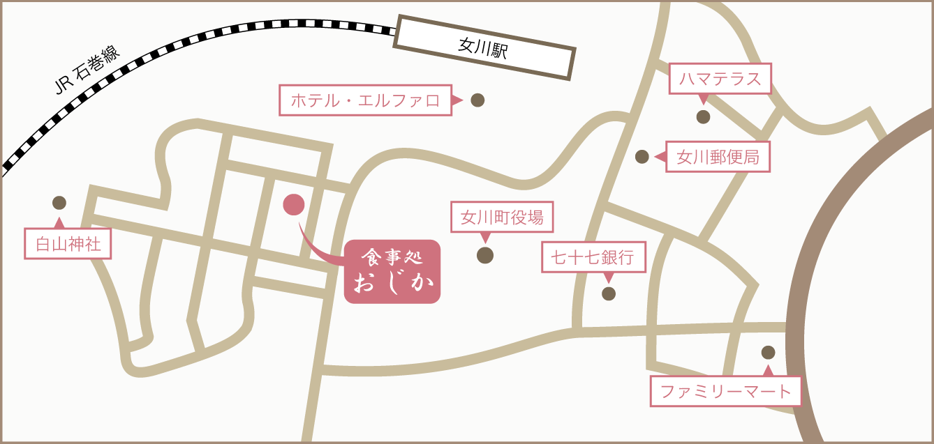 アクセス | 電車をご利用の場合 仙台駅(JR仙石東北ライン/約60分・JR仙石線/約90分)~ 石巻駅(JR石巻線/約30分)~ 女川駅 ~ 徒歩五分 自動車をご利用の場合 東北自動車道(青森方面から) ~ 仙台北部道路 ~ 三陸自動車道 ~ 石巻河南ICより一般道 ~ 女川 東北自動車道(東京方面から) ~ 仙台南部道路 ~ 仙台東部道路 ~ 三陸自動車道 ~ 石巻河南ICより一般道 ~ 女川 |